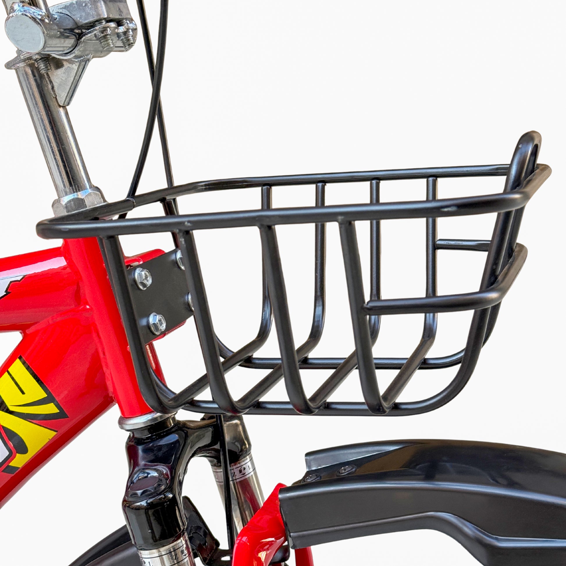 BMX 20 Inch Bike for Kids & Teens (Ages 6–15) – Front Suspension, Disc Brake, Front Basket, Color Spokes & Rear Comfortable Seat red