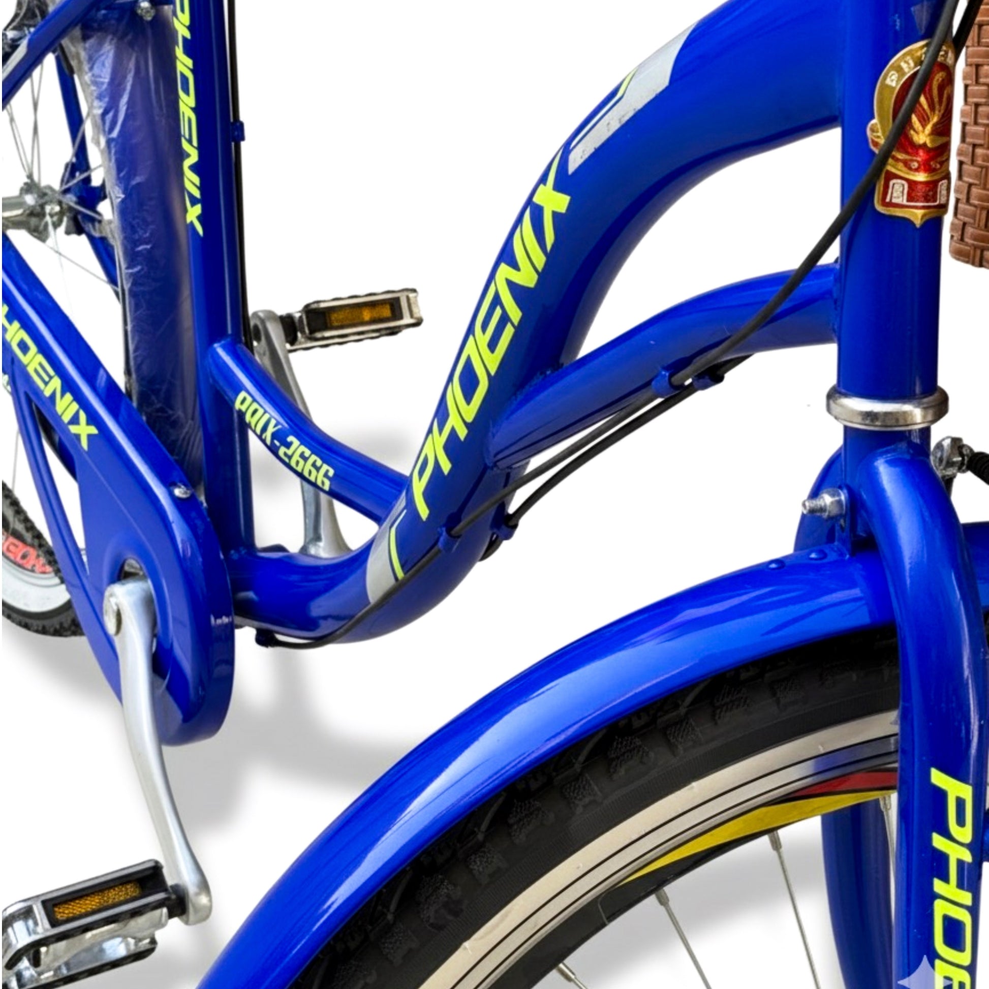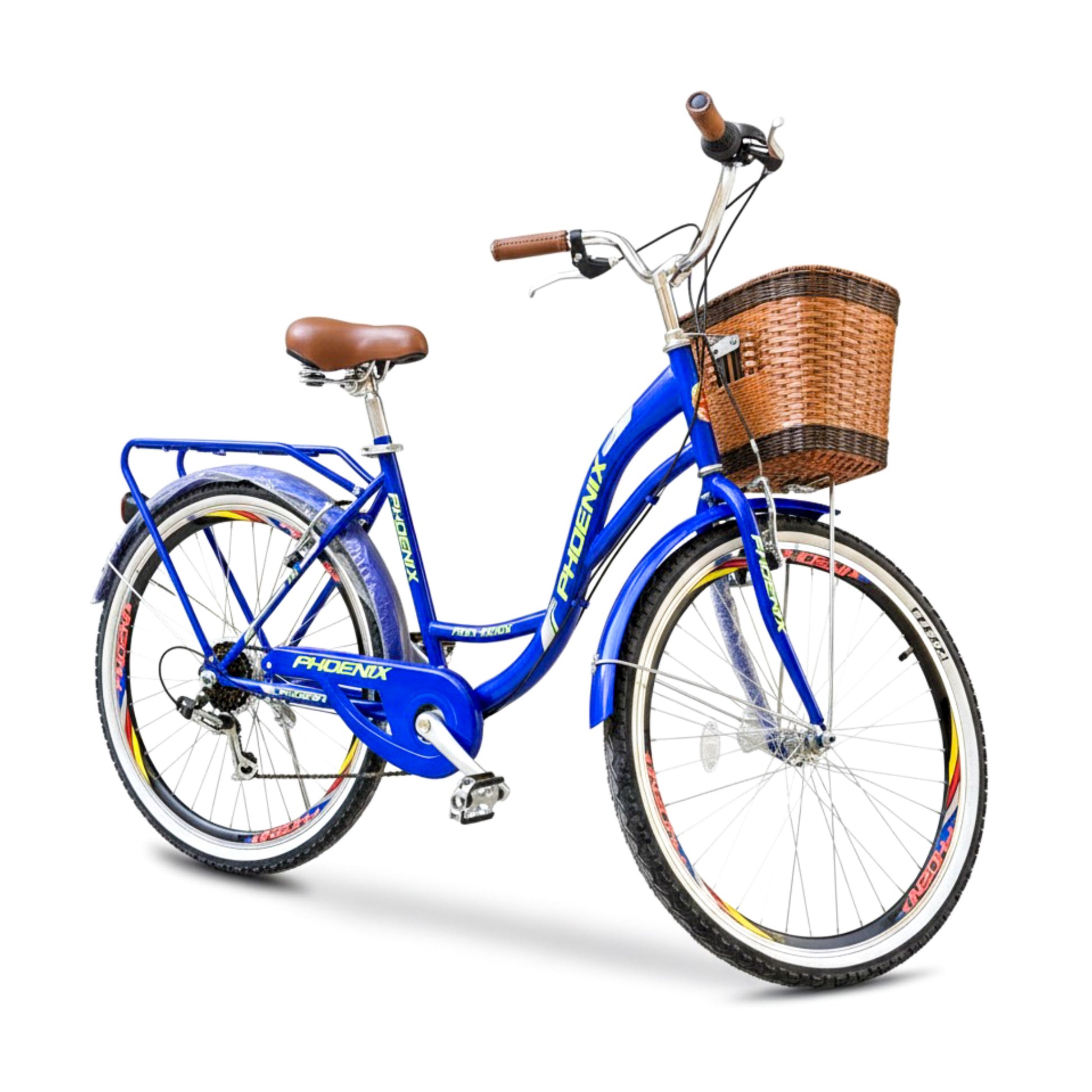 Features a front basket, rear seat, ergonomic saddle, metal fenders, and durable metal pedals.